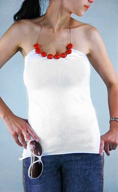 ¿Tienes una pieza de bisutería que sólo se encuentra en la parte inferior de la pila del collar? ¿Por qué no matar dos pájaros de un tiro y hacer un nuevo chic cabestro arriba? Materiales: Antigua tapa del Halter o camisola grueso collar que cae justo encima de tu busto hilo de aguja de máquina de coser