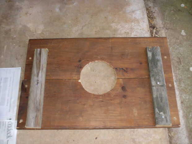 Después todo fue montado he quitado la madera, sacó un gran círculo para el agujero del cuello y eliminar esa sección con mi juego. Quería gente para poder posar en las poblaciones sin tener que sentir como si quedaron atrapados en ellos, así que el más grande agujero permite la mayoría de las personas para poner sus cabezas a través del agujero sin la parte superior se levantó y luego bloqueado de nuevo.