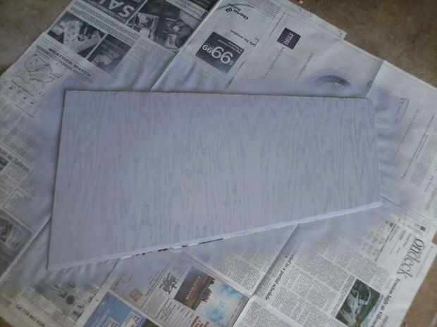 Para dar a la hoja un poco más de realismo lijar un borde biselado en él antes de pintando. Si había pensado en la hoja a través de un poco más me habría descremada cubierta para que sea completamente lisa antes de pintar. Desde lija era el trabajo de preparación sólo que lo hice, el grano de madera mostró a través de la cartilla y la plata.