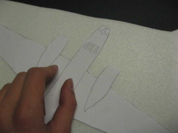 Una vez que hayas impreso los planes (que no tengo una impresora de trabajo práctica para rastrear las partes de mi monitor, algo que no recomiendo) obtener el depron y con un cuchillo corte alrededor de la templates.once de plano que hayas hecho esto, pulir todas las superficies del ala con papel de lija. Si el depron es demasiado pequeño para que quepa el avión en, cortar pequeños trozos de depron y hasta y coloque en ambos lados con cinta y pegamento. El plano en la foto no es la b25, pero es el mismo principio.