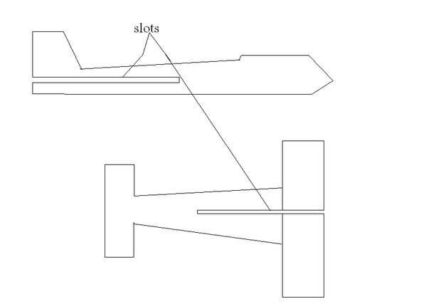 Este no es la única manera de poner juntos, pero es la forma más sencilla que pude pensar para este instructable. En primer lugar, corte una ranura de 3 mm de ancho donde se muestra en el diagrama a aproximadamente a medio camino hacia abajo toda la longitud del plano en ambas piezas (como van a ranura juntos, lo importante es poner las ranuras en los lados opuestos uno al otro. El plano de la imagen es sólo una representación aproximada de cualquier plano). Una vez que hayas hecho esto, su simplemente un caso de ranurar los pedazos juntos, que es bastante inexacto, pero no importa si leve palos a cualquiera de los extremos. Ahora la posición de los motores y la electrónica en los mismos lugares que marcaste antes (en la parte inferior del plano) y fijarlos con algún celo. Si sólo están haciendo un avión de perfil puede detener aquí, pero si quieres tener un look dimensional 3 que puede cubrirlo con papel ligero (aunque tenga en papel incluso añadiendo mente puede Agregar 50g para el peso, deja las alas sin cubrir. También necesita ser capaz de llegar al receptor con bastante facilidad para cargarlo y tal).