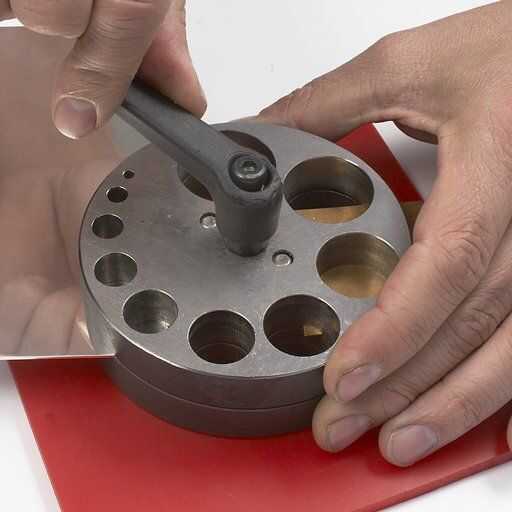 Deslice la pieza de la hoja entre los discos de corte en el tamaño del agujero que haya elegido.