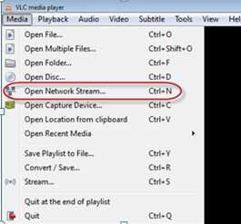 Puede probar con otro software que soporte protocolo de rstp o Onvif. Comprobamos esta solución con VLC player. Abra por ejemplo VLC player y haga clic en secuencia de red Media\Open. Añadir la url de rstp para alcanzar tu webcam usb Ozeki cámara SDK con la tecnología IP de Onvif. Figura 22.