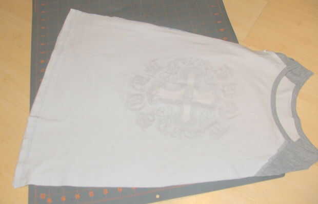 Por el escote de esta camiseta, el hombro (pronto a ser cintura) las costuras no partido. Esto está bien. La parte posterior de la camisa es más larga, solo doblar hacia abajo un poco en la costura del hombro para que coincida con la parte delantera. Perno en su lugar.