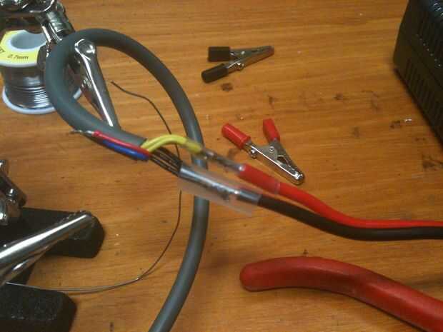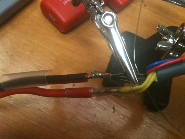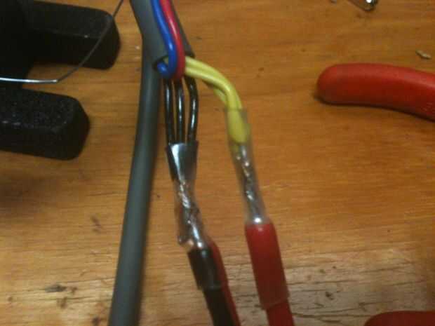 Ahora repita el procedimiento con la tierra y el cable negro. Termoencogibles.