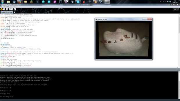 En el sketchfolder tiene que haber un .jpg archivo el nombre "input.jpg". Debe ser más pequeña entonces el tamaño de la pantalla, fueron los archivos llega a grandes y apertura de la ventana será mayor entonces tu pantalla ;)
