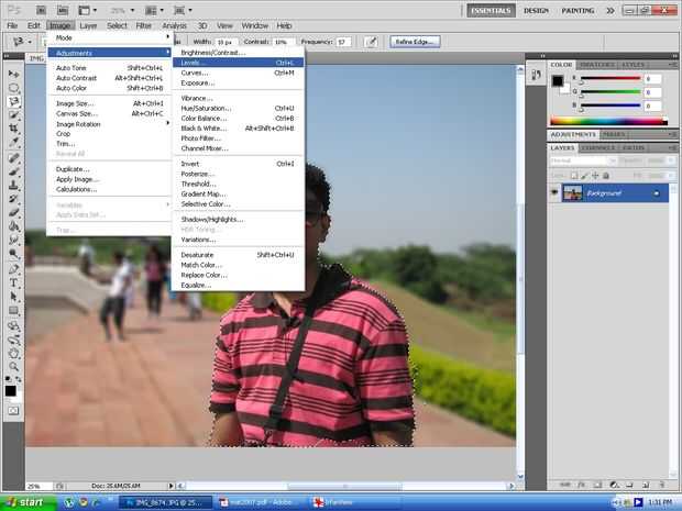 6 ir a imagen > Ajustes > niveles y dar los 3 botón de arrastre - 27, 1.15, 207 valores respectivamente. Haga clic en aceptar