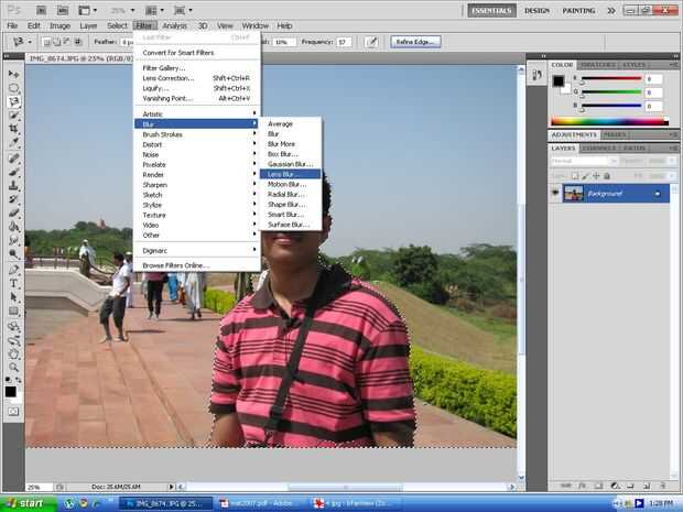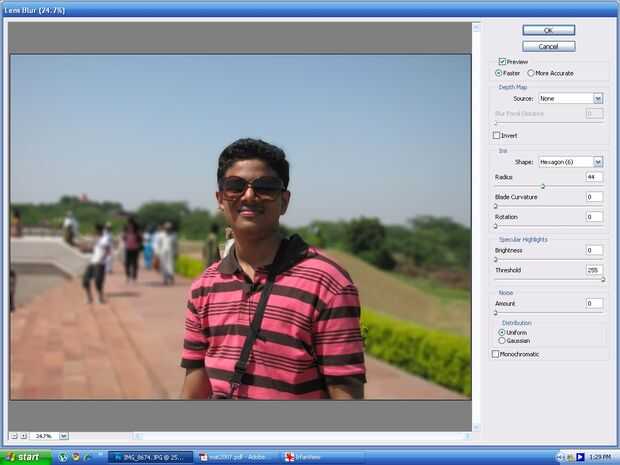 4. ir a filtro > Blur > lens blur y st el radio a 44 hasta el fondo parece tranquila blur como encontrar en una réflex digital. Haga clic en aceptar