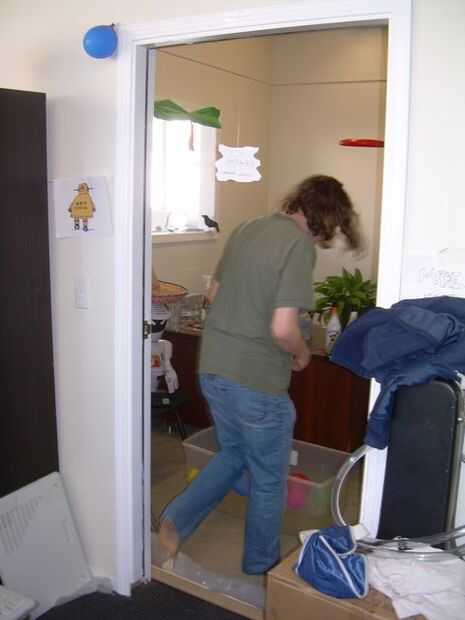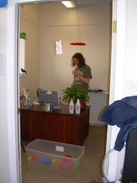 Cuando Randy entró en trabajo esta mañana estaba muy emocionado de ver que su oficina había convertido por arte de magia en una playa puesto que él había izquierda trabajo la semana pasada. Sonrió mucho y no decir nada durante mucho tiempo.