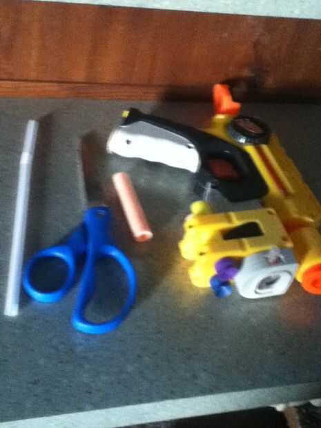 Usted necesidad: una nerf nite finder ex3, siccors, dardos nerf paja, blanco y cintas!
