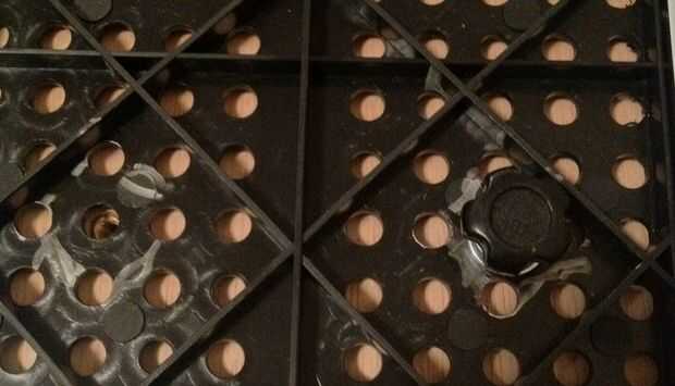 La primera foto ya muestra una perilla en su lugar y se puede ver el inserto roscado leerlo a través de la parte inferior del agujero de la izquierda. También se puede ver por qué sugerí marcando estos lleva a cabo antes en vez de después de que las perillas están instaladas (que es lo que sucedió en la foto utilizada en esta etapa).