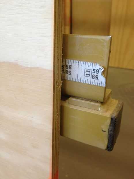 Los extremos de mi madera tenían pintura anaranjada en ellas. El color y el número de rayas de pintura en el extremo dijeron al cajero lo mucho que me carga cuando lo compré. La pintura era fea para que mi primer corte transversal izquierda mi pieza una pulgada más de lo necesario. Luego había recortado pulgadas repuesto el otro extremo y la pintura naranja fea entró en el depósito de chatarra. Es por ello que la segunda foto que acompaña este paso muestra 58" en lugar de 57" (longitud final de la parte superior como se indica en el paso anterior).