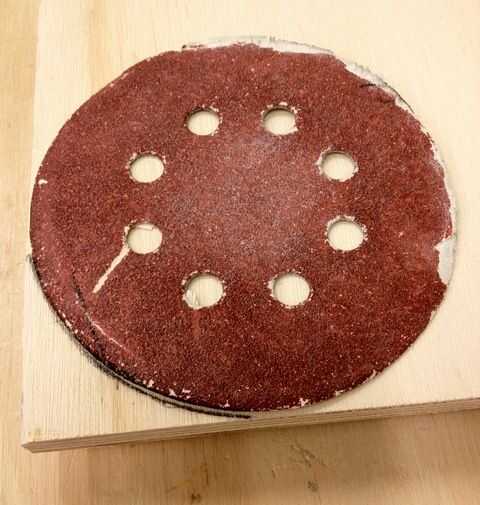 Vamos a mantener esta tecnología simple y bajo. Diseño de lujo ni trabajo con la brújula necesaria. Para cada esquina, la posición y el rastro de cualquier ronda de objeto tiene práctico que es aproximadamente 5" de diámetro. Usé uno de los discos de lijado de la lijadora orbital aleatorio. Un nuevo disco es mucho más fácil trazar, pero no tengo una mano cuando tomé la primera foto que acompaña este paso.