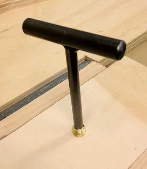 De vez en cuando, un inserto roscado cae en amor con la llave en T y desea a la parte posterior del agujero en la madera cuando intenta quitar la llave en T. Al que me ha pasado, me parece que una vuelta rápida/sharp en sentido antihorario con la llave en T generalmente consigue despegue del roscado inserta. Peor de los casos, detrás de él hacia fuera y vuelva a colocar la rosca insertarla con un destornillador ranurado estándar... pasará bastante fácilmente puesto que el agujero en la madera contrachapada se rosca al utilizar la llave en T.