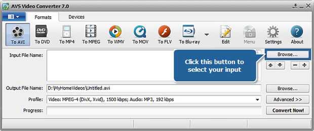 aprender cómo convertir vídeo a DivX, Xvid, AVI, MPEG, WMV, MOV y guardar archivos convertidos en tu PC con AVS Video Converter.Paso 1: Ejecutar AVS Video Converter y seleccionar tu archivo de video de entrada Http://avs4you.com/AVS-Video-Converter.a