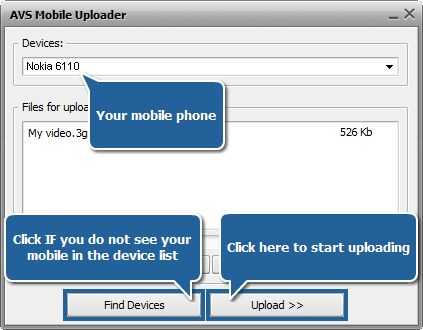 La aplicación AVS Mobile Uploader se lanzará para guiarle a través del proceso de carga que podría enviar su archivo de vídeo convertido al teléfono.