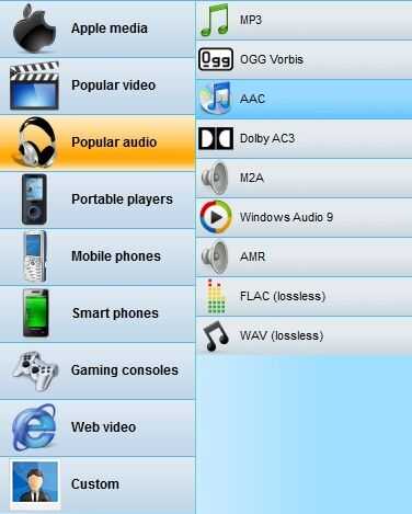 AAC . Estas opciones están disponibles en la sección "Audio populares" en ventana de Buddy Media. No se olvide de establecer la deseada audio
