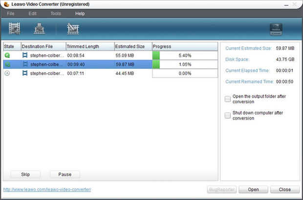 iniciar el proceso de conversión. En el panel de proceso, se presentan con el progreso de la tarea, el tiempo estimado de trabajo y tamaño del archivo. El control de proceso es plenamente operativo en Pause, Skip y cancelar. Si están pegados en un proceso de conversión largos, usted encontrará las acciones después de hecho muy útil.