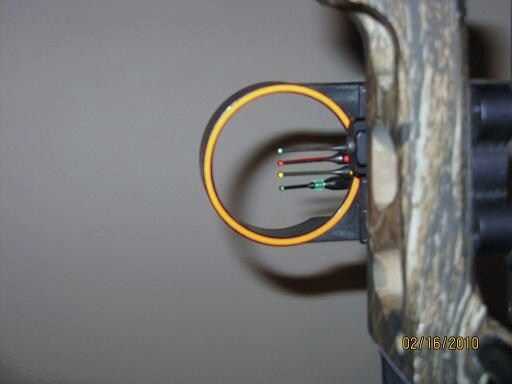 Hay cuatro pernos en esta vista particular, cada sistema para un yardage diferentes. * Nota: Los pernos deba ajustarse de modo que una llave allen se requiere. Instrucciones sobre el ajuste de puntos de interés pueden encontrarse en 8.* de paso cuando se determina la distancia del blanco, coincidir con el pin señalado. Poner el pin correcto en el destino, asegurándose de que le puede ver todo el exterior anillo de sus interés. Para mejorar sus posibilidades de hacer un mejor tiro, intentar controlar su respiración y aflojar su agarre ligeramente.