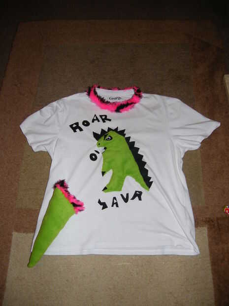 Rrrrraaaarrr... dinosaurs!By combina la ropa de la tienda de segunda mano ofertas con impresiones de computadora que usted puede crear fácilmente su propio diseño único de la camiseta. Elegí una camiseta gris estándar como la base y un top de lenteju