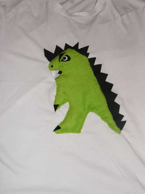Pegamento algunos decorativo fieltro picos hacia abajo en tu camiseta y coser su dinosaurio, directamente sobre ella. Ahora usted puede pasar un buen rato decorándola.