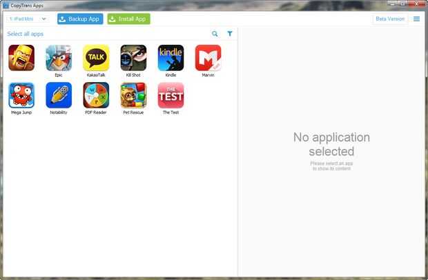 Paso 2: El iDevice las apps se cargan en la ventana principal del programa