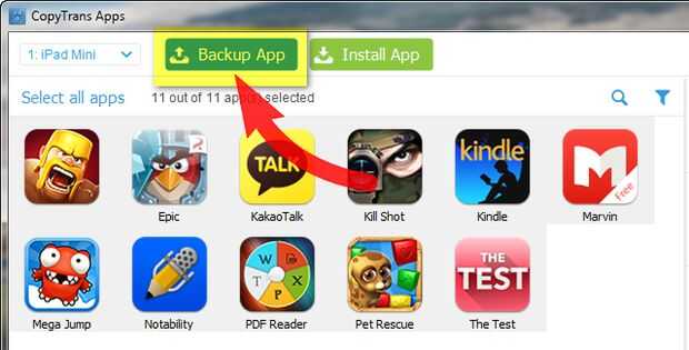Paso 4: Haga clic en el botón de copia de seguridad de la aplicación