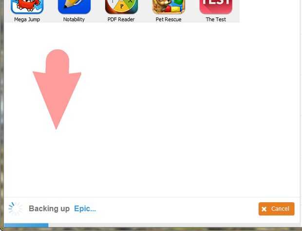 Paso 7: Haga una pausa mientras la copia de seguridad de la aplicación