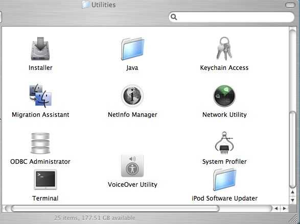 Para abrir terminal ir a la carpeta de aplicaciones en el finder, busque la carpeta de utilidades y luego encontrar el Terminal que está dentro de la carpeta de utilidades. (O hacer lo que normalmente hago: golpear la manzana clave + el botón de espacio que se abre una ventana de búsqueda en la parte superior derecha de la esquina de la pantalla y luego sólo tienes que escribir "Terminal" y aparecen en la lista de resultados, simplemente haga doble clic y se abre.)
