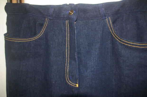 10. coser la costura posterior, esto es la costura de la cintura hasta la entrepierna. Donde el yugo cumple con la sección de pantalones será ir más lento y tienen una aguja afilada, se trata de una de las secciones más gruesas de la costura.