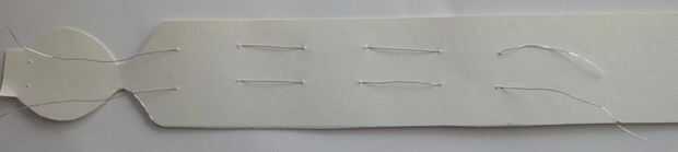 Corte dos cadenas largas de 20 cm de alambre de cobre sin aislar. Tire de los cables por los agujeros para hacer puntos de sutura. Partir de la parte posterior. Doblar las patas del LED para convertirse en una corona. Ahora es el momento para coronar a la Reina :) Poner las patas del LED a través de los agujeros sobre la cara.
