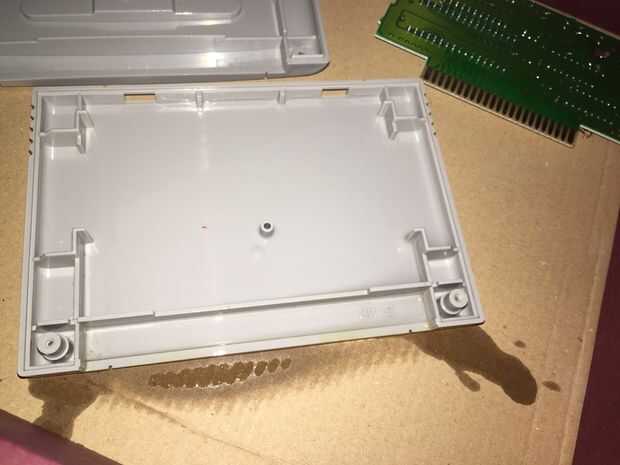 Ahora utilizar algunos alcohol para fricciones o cualquier otro limpiador, que tenía una lata de limpiador de contacto en mano que utilizaba para limpiar mis placas anteriores por lo que usé pero la elección es tuya, prefiero algo alcohol por lo que se seca más rápido, pero se puede utilizar jabón y agua si lo desea, simplemente no ponga la Junta de nuevo en unas horas si se utiliza agua. Recomiendo no omitir este paso, simplemente creo que en los últimos 25 años y tratar de calcular cuántas veces algún tio al azar ha fundido asador y pedacitos de Cheetos en el cartucho, es asqueroso y molestar.