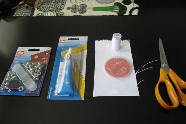 he comprado ojales de tela, pegamento y la pieza de paño de lino de la tienda de tejido local, costo total fue de alrededor de 15 USD.
