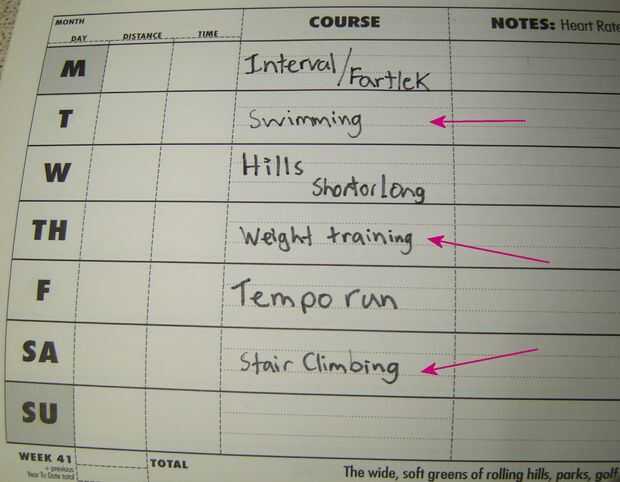 También incluyen el entrenamiento de fuerza. Entrenamiento de fuerza es importante en ayudarle a convertirse en un corredor más rápido. Trabajar en brazos, piernas y músculos de la base. Ello, por lo menos una vez por semana. Aquí están unos ejercicios de ejemplo para probar.