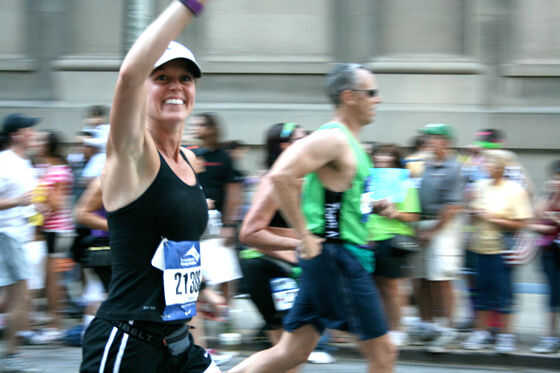 En el surco: por milla 7 o lo debe haber encontrado su ritmo o paso grupo con. Ahora debe asentarse en una ranura y por seguir disfrutando de ti mismo. Asegúrese de guardar el agua potable, por lo menos en cada otra estación de agua. Disfrutar del paisaje y permitir que tu mente a pensar. Estas millas deben ser relativamente estrés gratis. La foto de arriba muestra a una mujer pasando la marca de media maratón (13,1 millas). Ella está divirtiendo y está en una ranura con otros corredores.