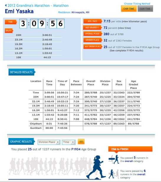 Mayoría de las razas post veces de chip del corredor inmediatamente después de la carrera. Ver el tiempo en línea. Analizar cómo se ejecutó y utilizar el registro para mejorar su próxima carrera. Paul Ryan había afirmado que cuando era más joven tenía una vez corrió un "2 horas y 50-algo", pero según el expediente de la carrera, terminó con un tiempo de 4 horas, 1 minuto y 25 segundos... No podrás mentir acerca de su tiempo, ya que su registro es en línea.