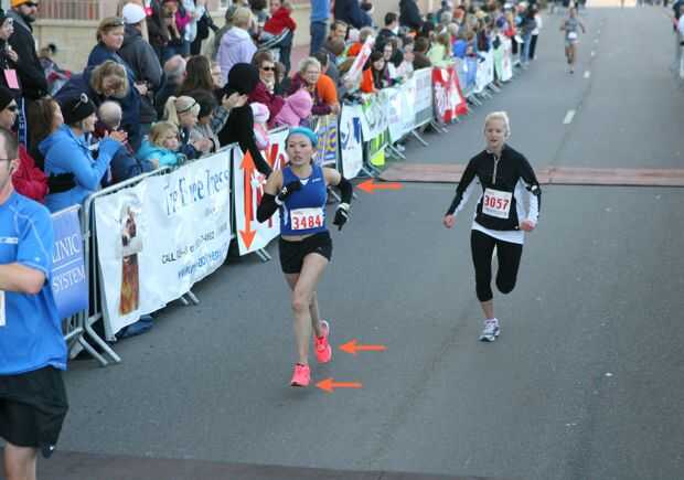 Mantener la calma y tratar de conservar su energía poniendo atención a su forma de funcionamiento.  Mantenga los brazos bajos y relajados.  No oscilación de los brazos delante de usted y mantenga a los lados.  No elevar demasiado las piernas y tomar pasos pequeños. Funcionamiento con una cadencia más alta es una manera más eficaz de ejecutar que toma alta y largo camina en carreras de distancia.