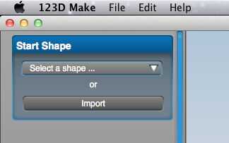 En la parte superior izquierda, verás una pestaña con la etiqueta "Forma de inicio". Esto es donde usted elige el objeto que desea cortar. Usted puede seleccionar una forma de la pequeña biblioteca de modelos por defecto, usted puede importar su propio archivo STL o OBJ. Si tienes algo más que un T-Rex que prefiere hacer, seguir adelante y hacerlo.