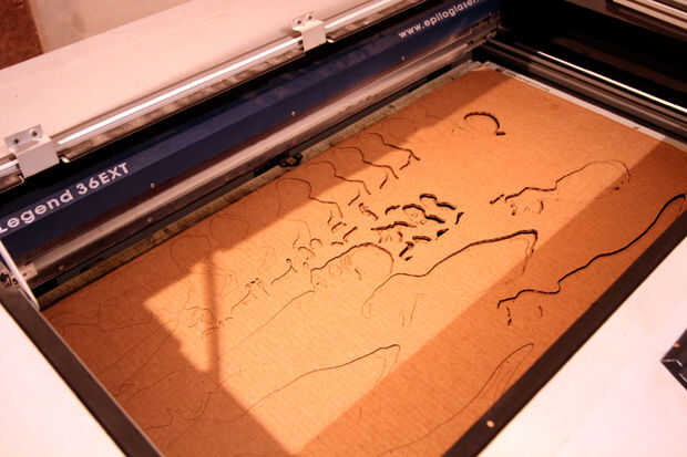 Si estás usando un cortador del laser, sistema vector modo de corte y ajuste la velocidad y el poder de modo que corta completamente a través de la cartulina en las líneas azules pero graba sólo ligeramente en la cartulina en las líneas rojas (es decir, las etiquetas).