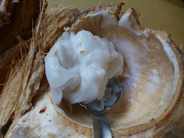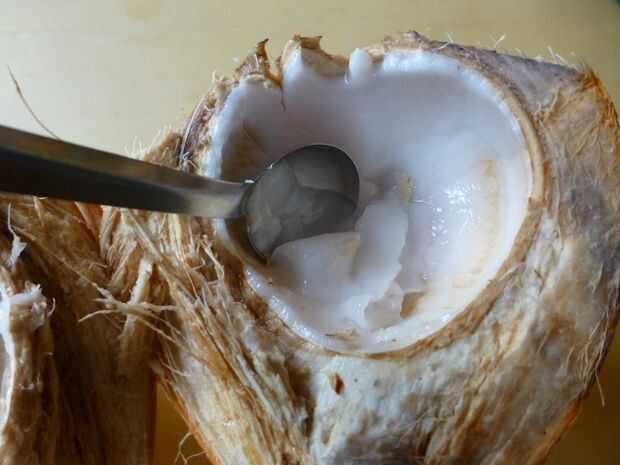 Una rebanada triangular de cuña desde el exterior puede utilizarse para sacar la carne. También puede utilizar una cuchara real para esto y comer la carne de buen gusto.