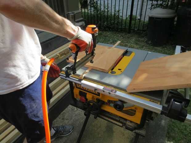 Clavos/tornillos/grapa un pedazo más grande de la madera contrachapada a la tecla de la guía de canal que acaba de hacer.
