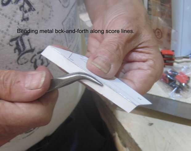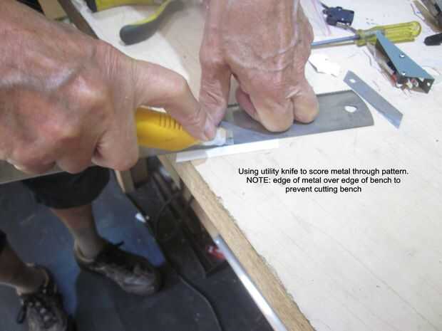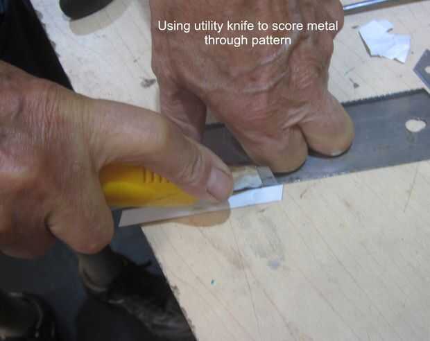 1) en primer lugar usted quiere hacer una plantilla ampliada para su caja de cartón, papel, etc. (una versión plana de la caja. Tengo un papel de gráfico en las fotos abajo, pero no para esta caja)2) trace la plantilla a la pieza de metal de hoja, co