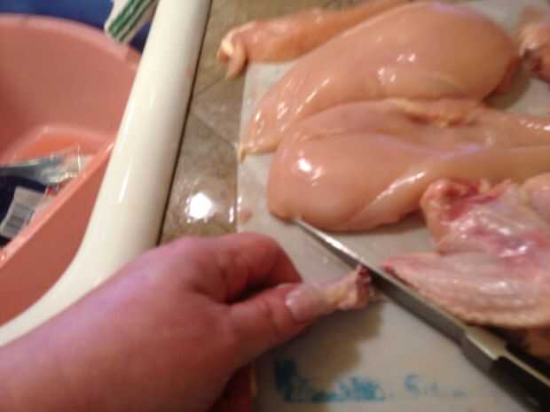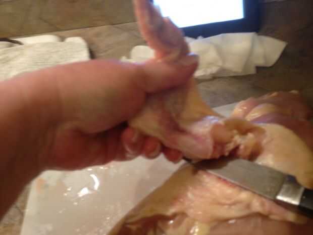 Corte el extremo del cartílago del ala, como esto no es comestible.