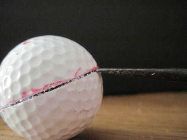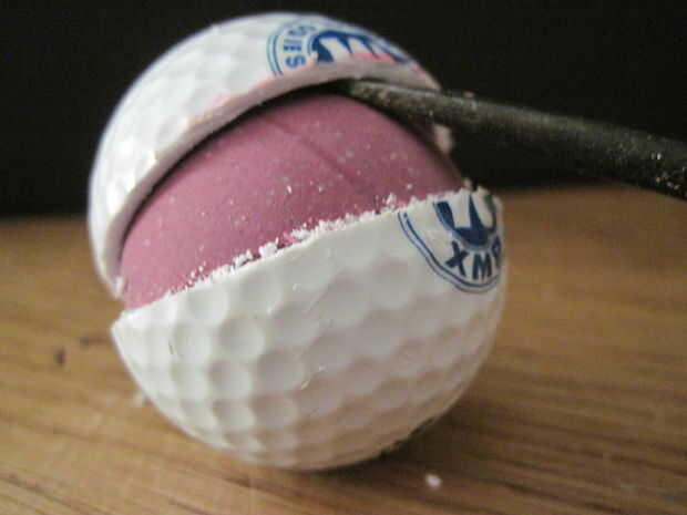 Cómo cortar la cáscara externa de una pelota de golf (2 / 3 paso)