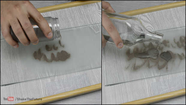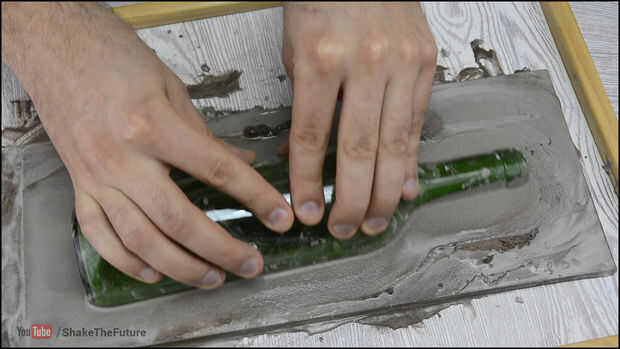 Mezclar con agua y arena la botella sobre un pedazo de vidrio.