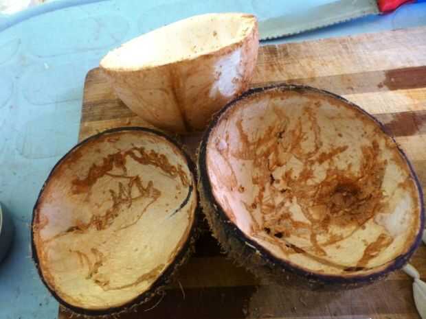 Cómo cortar perfectamente abierto una cáscara del coco para ser utilizado en otras obras de arte