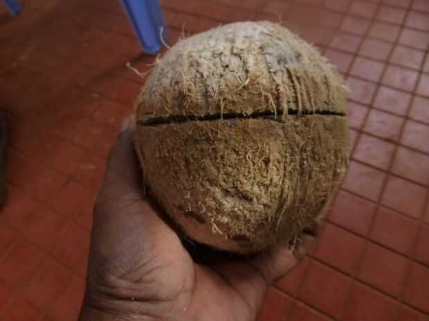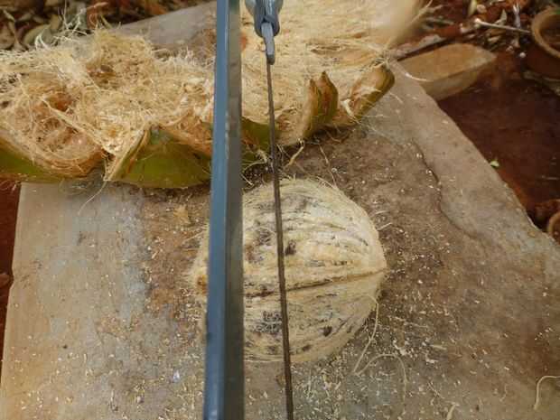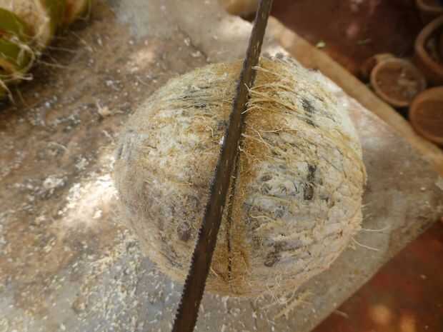 Cómo cortar perfectamente abierto una cáscara del coco para ser utilizado en otras obras de arte (2 / 4 paso)
