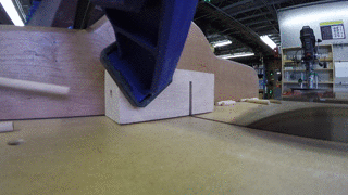 Asegúrese de que el borde de la ranura está correctamente alineado con el lado de la hoja, luego la abrazadera a la tabla VI trineo en el extremo largo. A la altura de la hoja a 1" por encima de la superficie del trineo, inserte el pasador del extremo largo y parada en el borde. Que probablemente podría ser más sofisticado con detener la espiga en el extremo, pero acabo de utilizar mis dedos y ejercer presión sobre el extremo largo de la espiga para guardarlo de la mudanza. Cuando se realiza el corte, acaba de poner el pedazo pequeño a través del orificio.