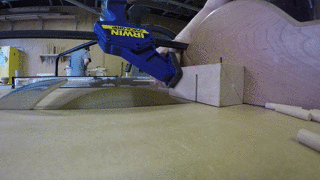 Una vez que el cuelgue de ella, usted puede girar éstos hacia fuera muy rápidamente. Los cortes son prefecto cada vez porque el agujero en la plantilla mantiene las fibras de madera juntos mientras que la sierra hace el corte. Esto debería funcionar con tacos más grandes también, pero es especialmente útil en los más pequeños.