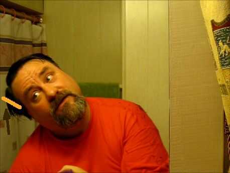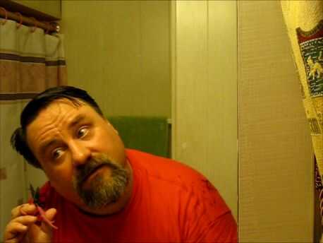 Yo soy diestro y tengo mi parte en el lado izquierdo (estas fotos son tomadas a un espejo, por lo que se invierten). Esto significa que de este lado de mi cabeza, tengo que usar mi mano izquierda para cortar. Mis tijeras están hechas para esto, pero toma un poco de práctica antes de obtener cualquier bien en cortar tu cabello con cualquier mano. Solo ver lo que está haciendo, ir despacio y con cuidado, y usted debe estar bien.